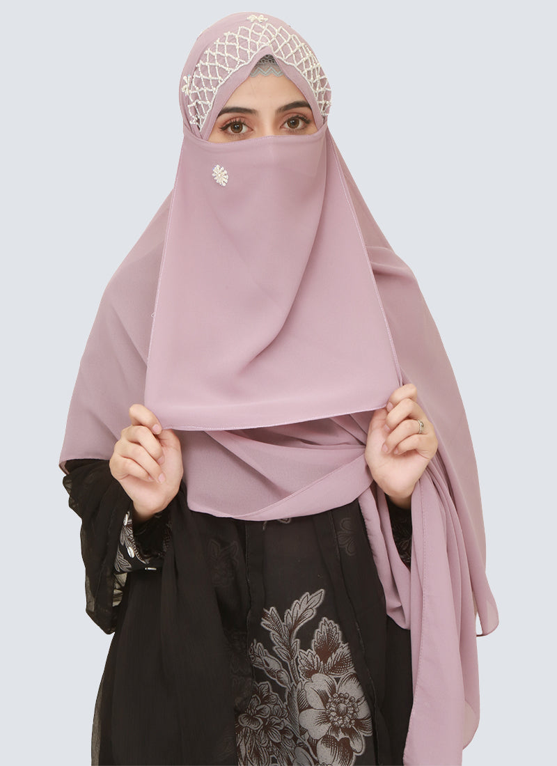 Cut Dana Work Embroidered Hijab Niqab Set - Lavender