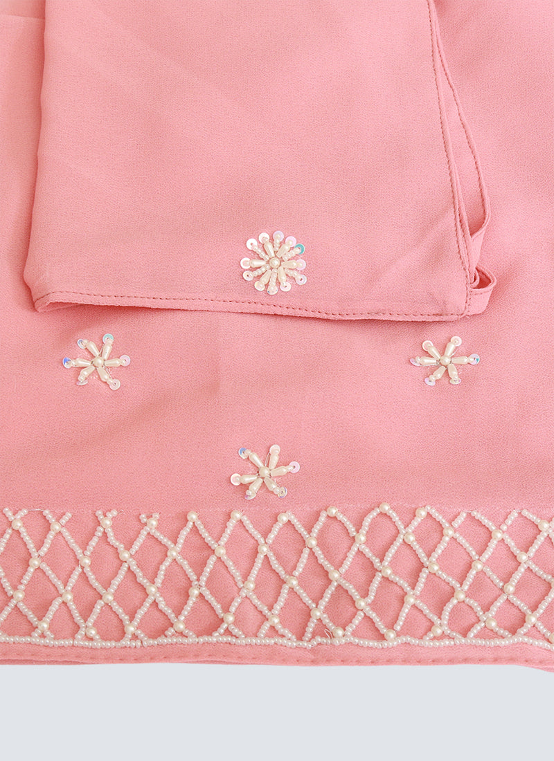 Cut Dana Work Embroidered Hijab Niqab Set - Rose Pink