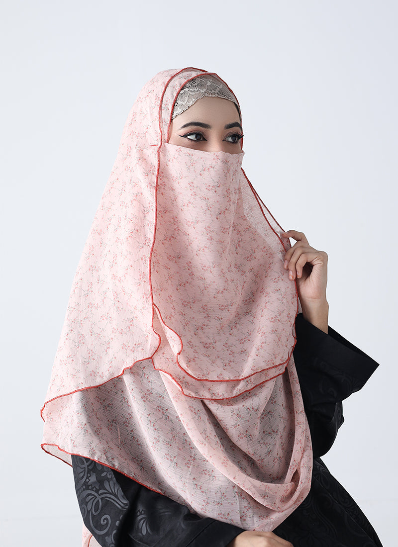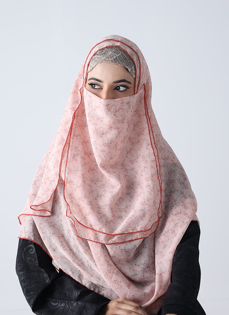 Double Loop Hijab With Plain Niqab - Printed Design 1