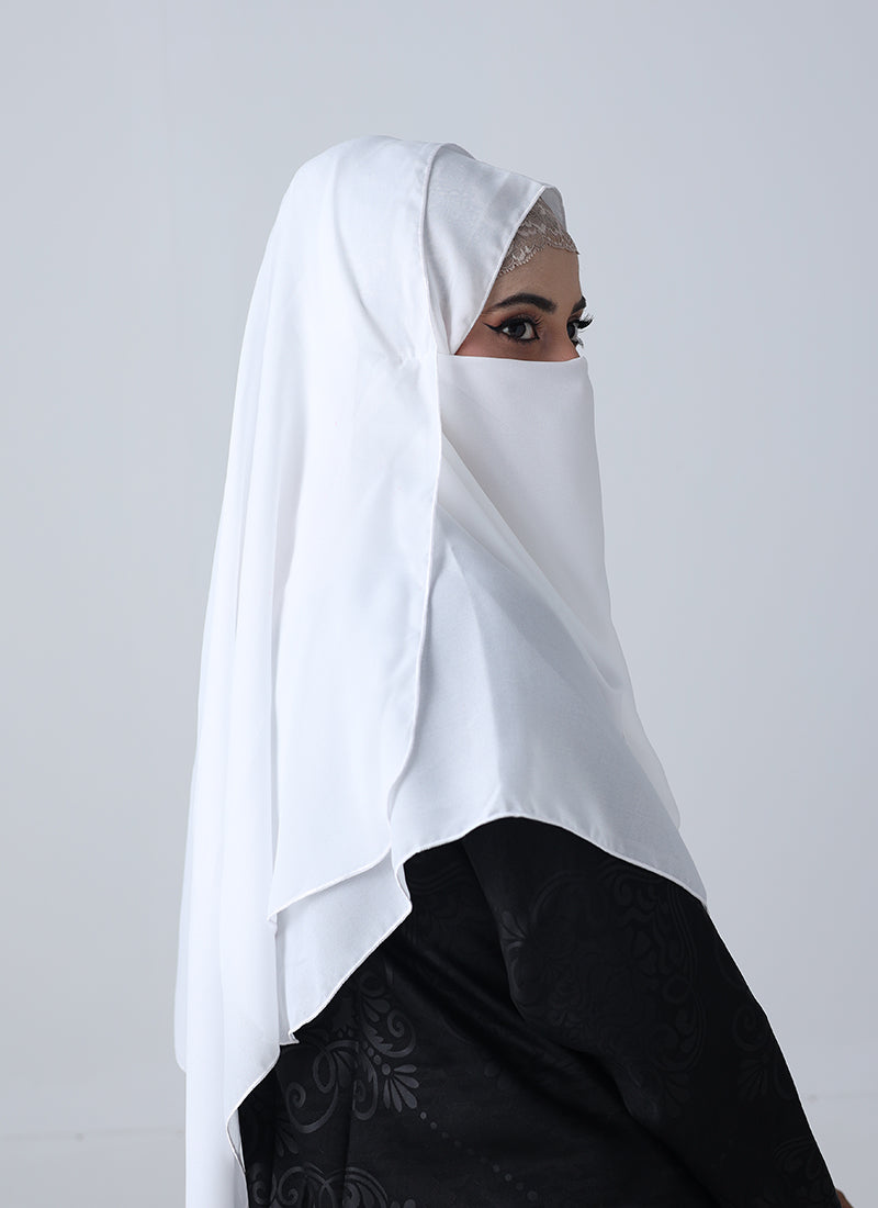 Double Loop Hijab With Plain Niqab - White