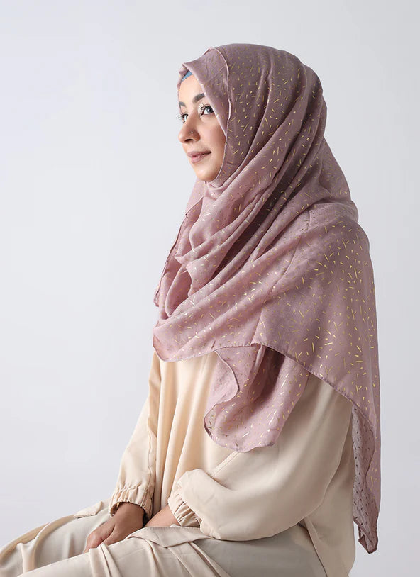 Lawn Hijab with Golden Dotted Embossed Design - Falsa