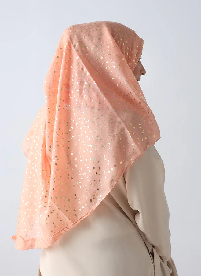 Lawn Hijab with Golden Dotted Embossed Design - Orange