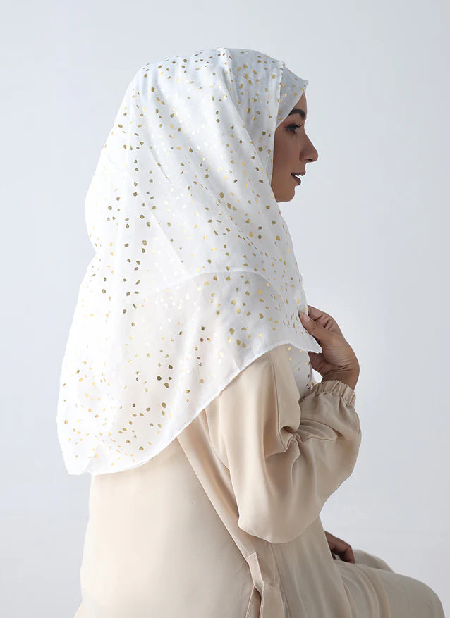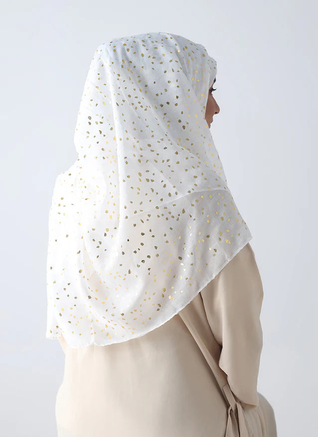 Lawn Hijab with Golden Dotted Embossed Design - White