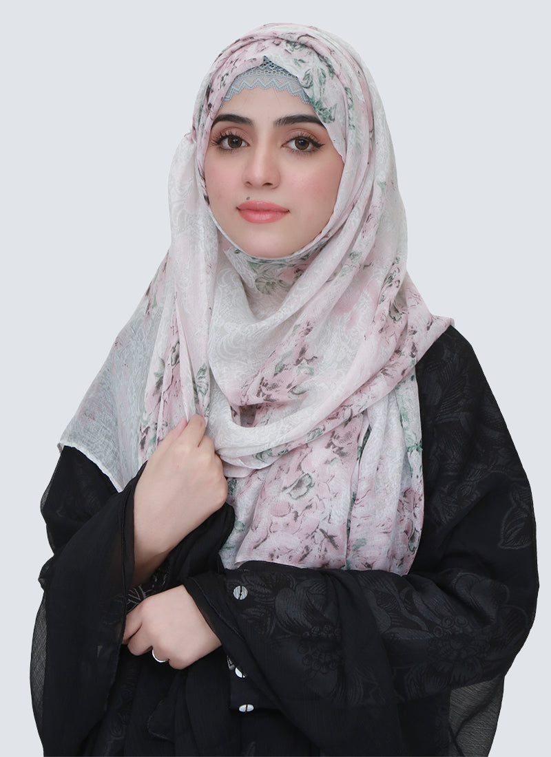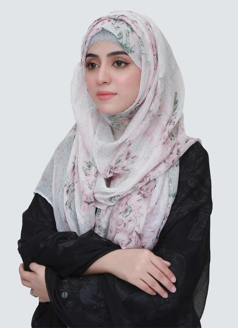 It is a Premium quality lawn stoller, partially not see through fabric. Fabric used in this hijab is called lawn which can be used throughout the year & irrespective of weather conditions. This fabric is 100% not see through yet breathable, therefore becomes the #1 choice amongst hijabis for Daily wear, office time or even by students of school to universities. This hijab style has self embossed pattern of silver & gold along with beautiful prints!