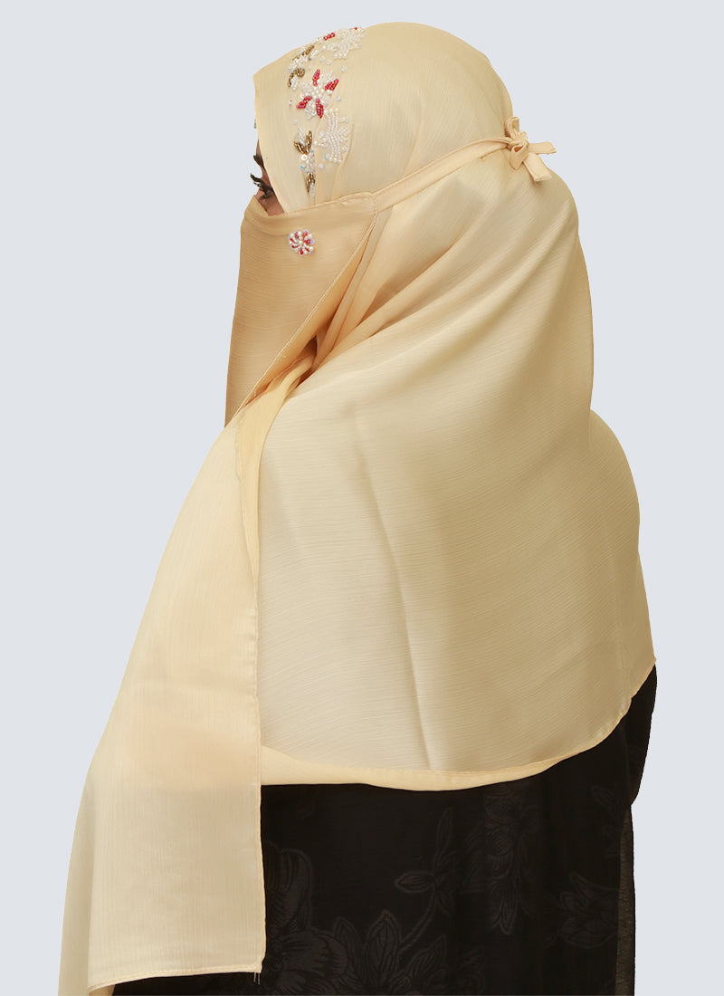 Pearl Embroidered Hijab Niqab Set - Beige