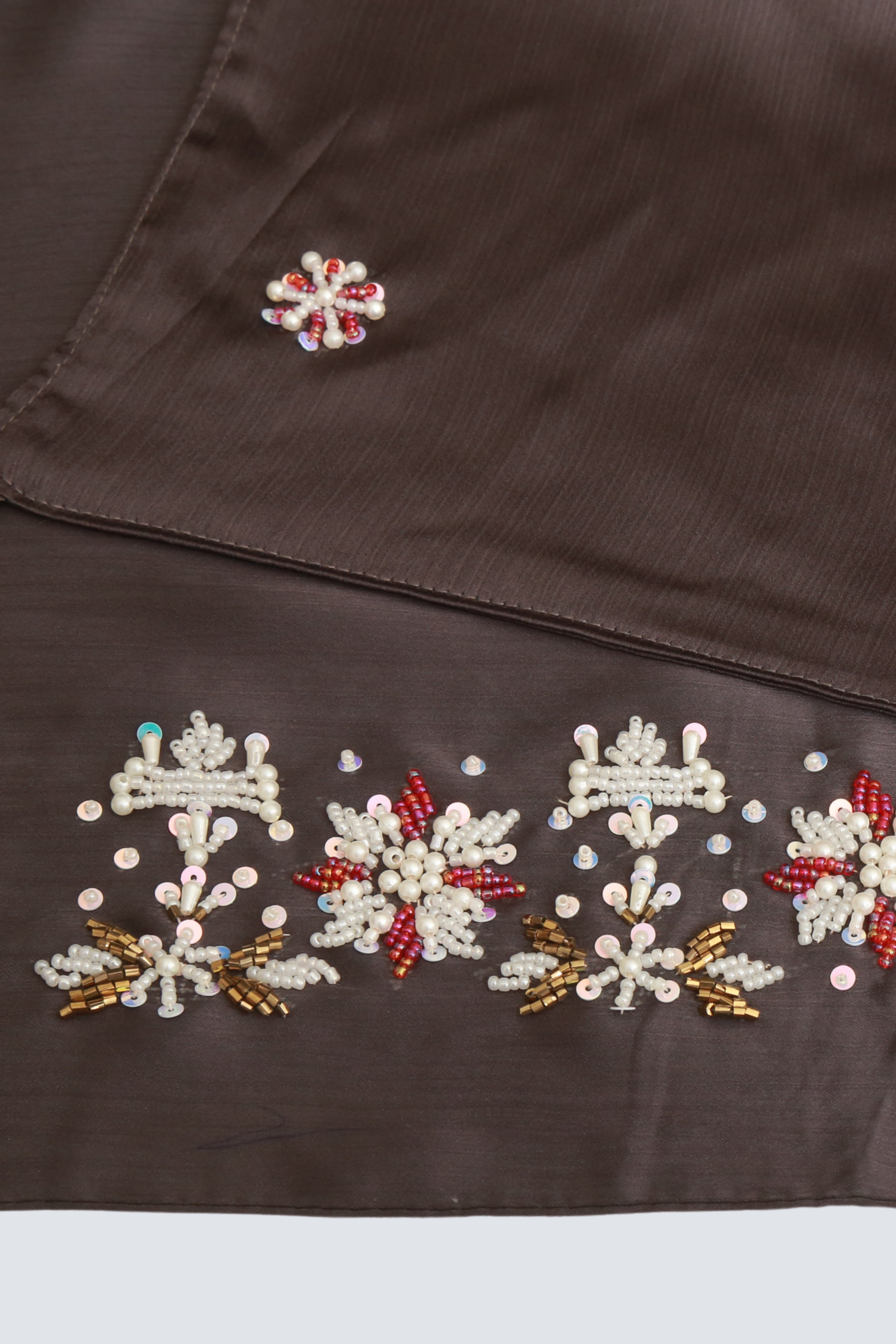 Pearl Embroidered Hijab Niqab Set - Dark Grey